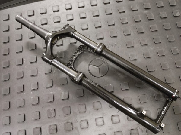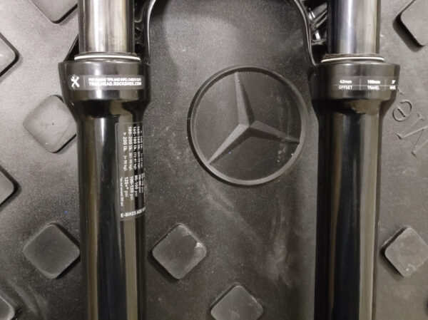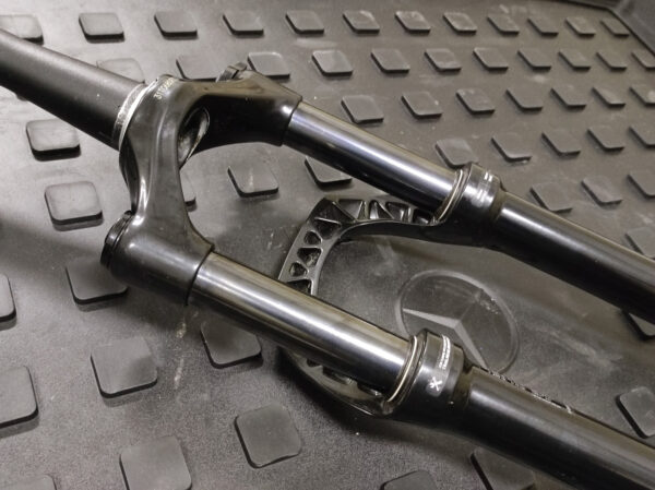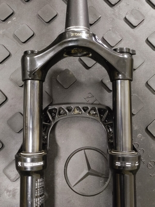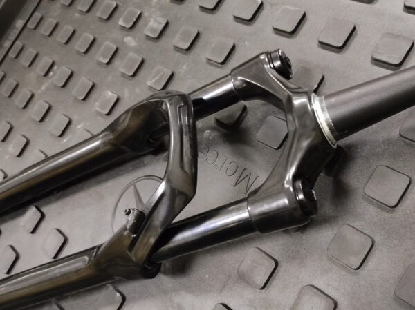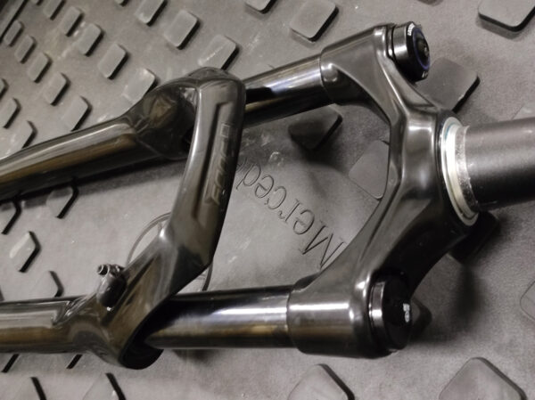 Forcella Rockshox Judy da 29 escursione 100mm Canotto tipo conico tagliato a 165mm Per mozzo ruota perno passante tipo boost 15x110mm foderi in magnesio steli da 30mm compressione tipo “solo AIR” damper tipo Turnkey finitura fast black offset 42mm axle to crown: 510mm utilizzabile anche su e-bike perno passante incluso diametro max ruota 770mm larghezza max ruota 81mm numero di serie 31T06808301 peso di fabbrica (con canotto non tagliato) 2350g