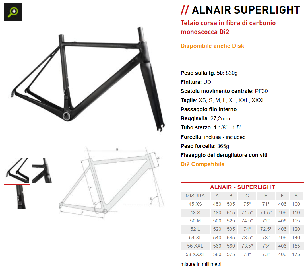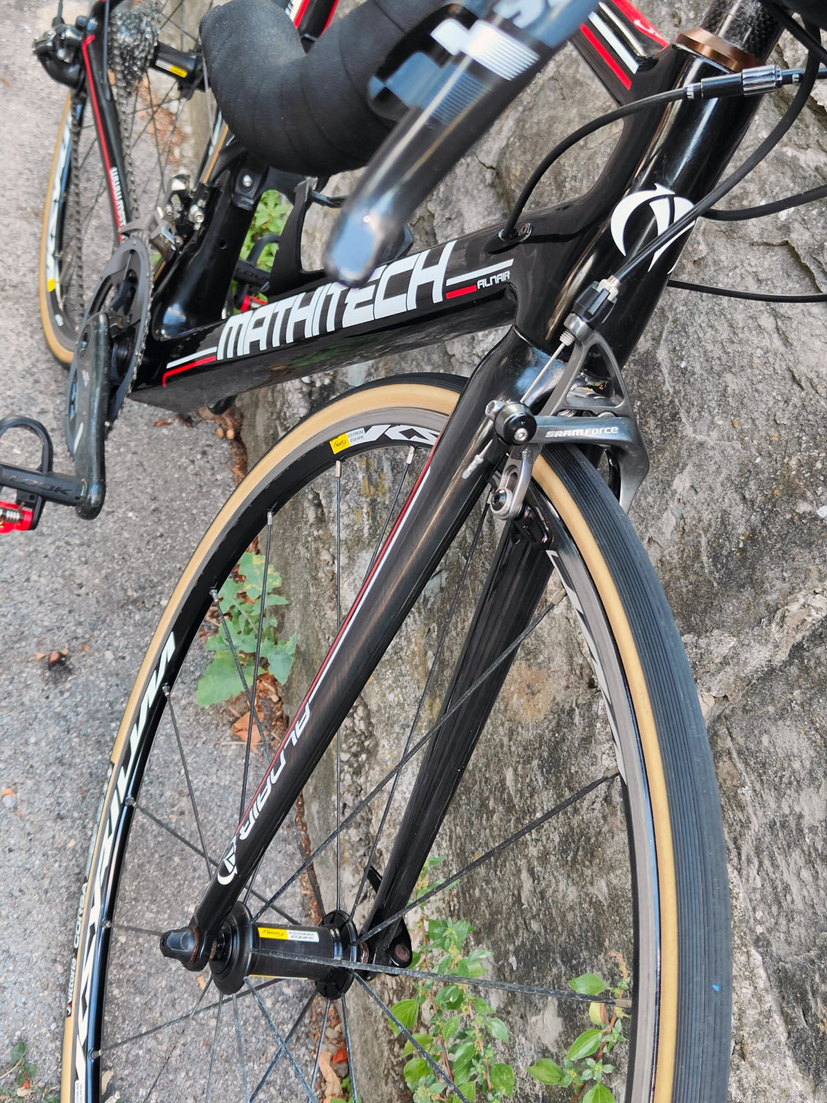 bici da corsa Mathitech Alnair carbon taglia 54, alto modulo ultralight finitura UD (peso 870g telaio, 365g forcella)