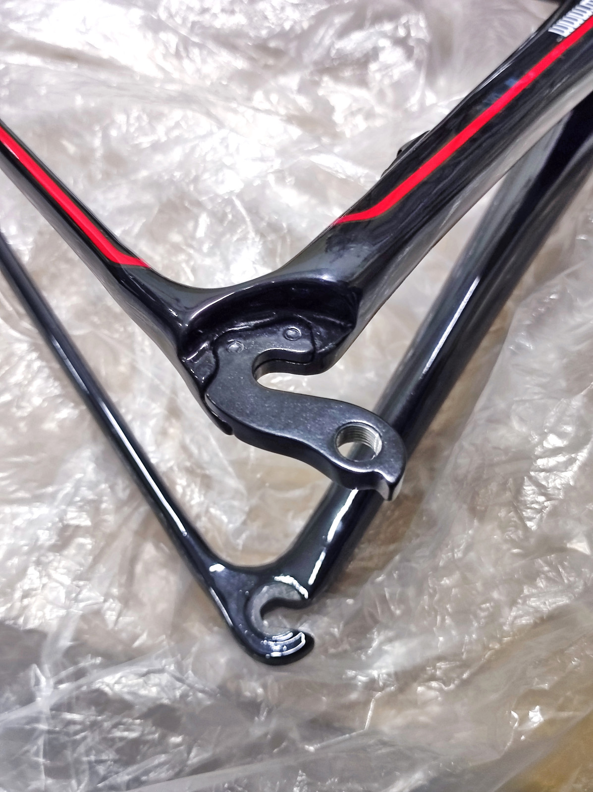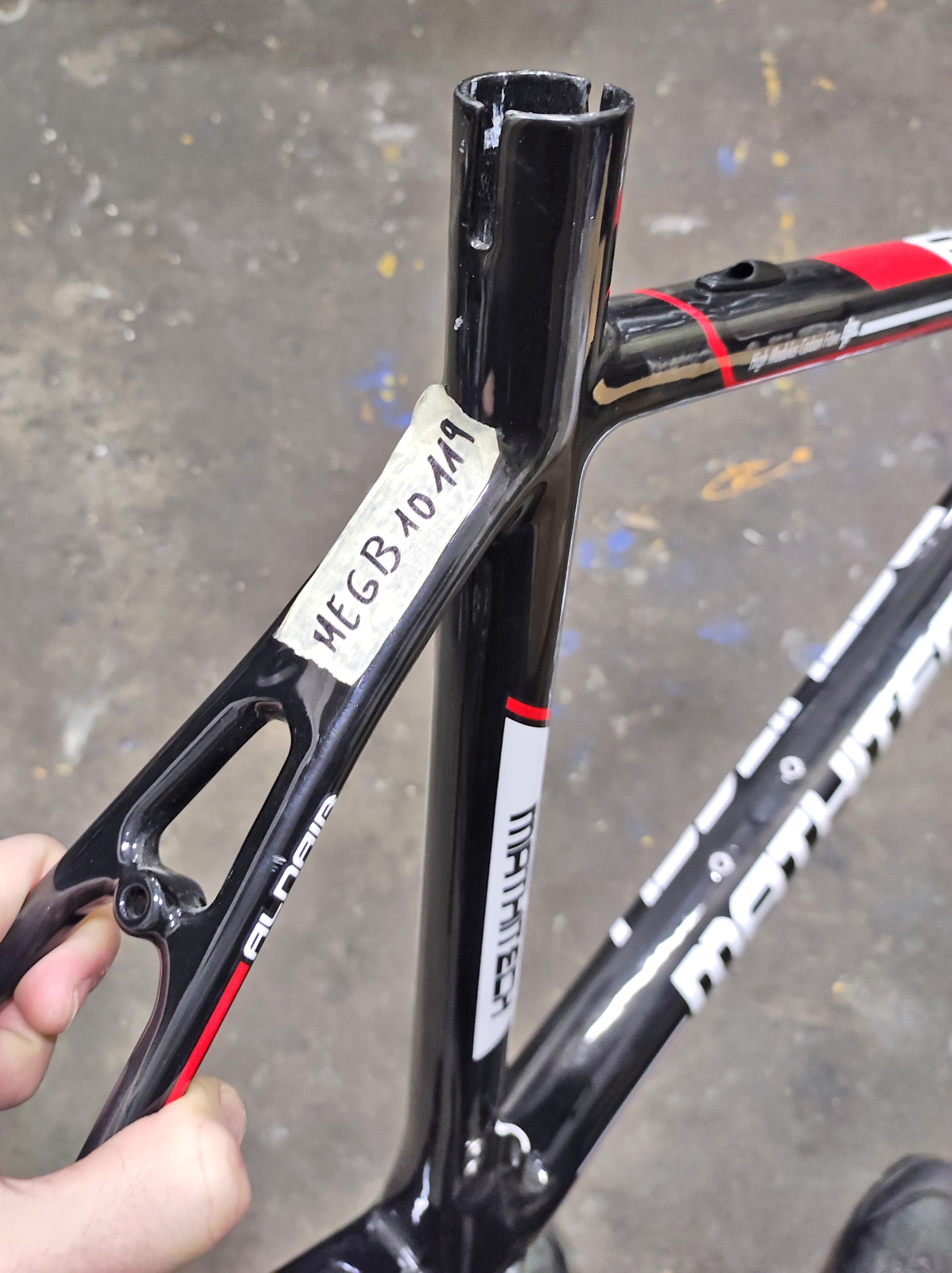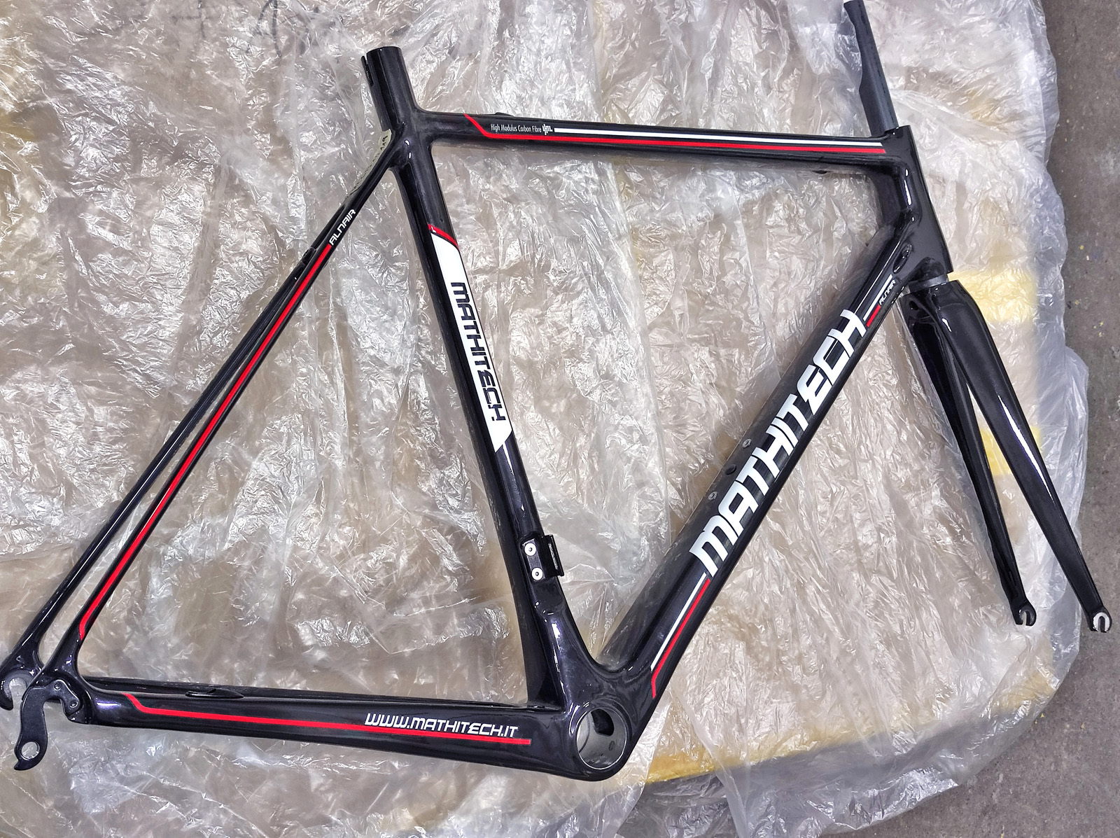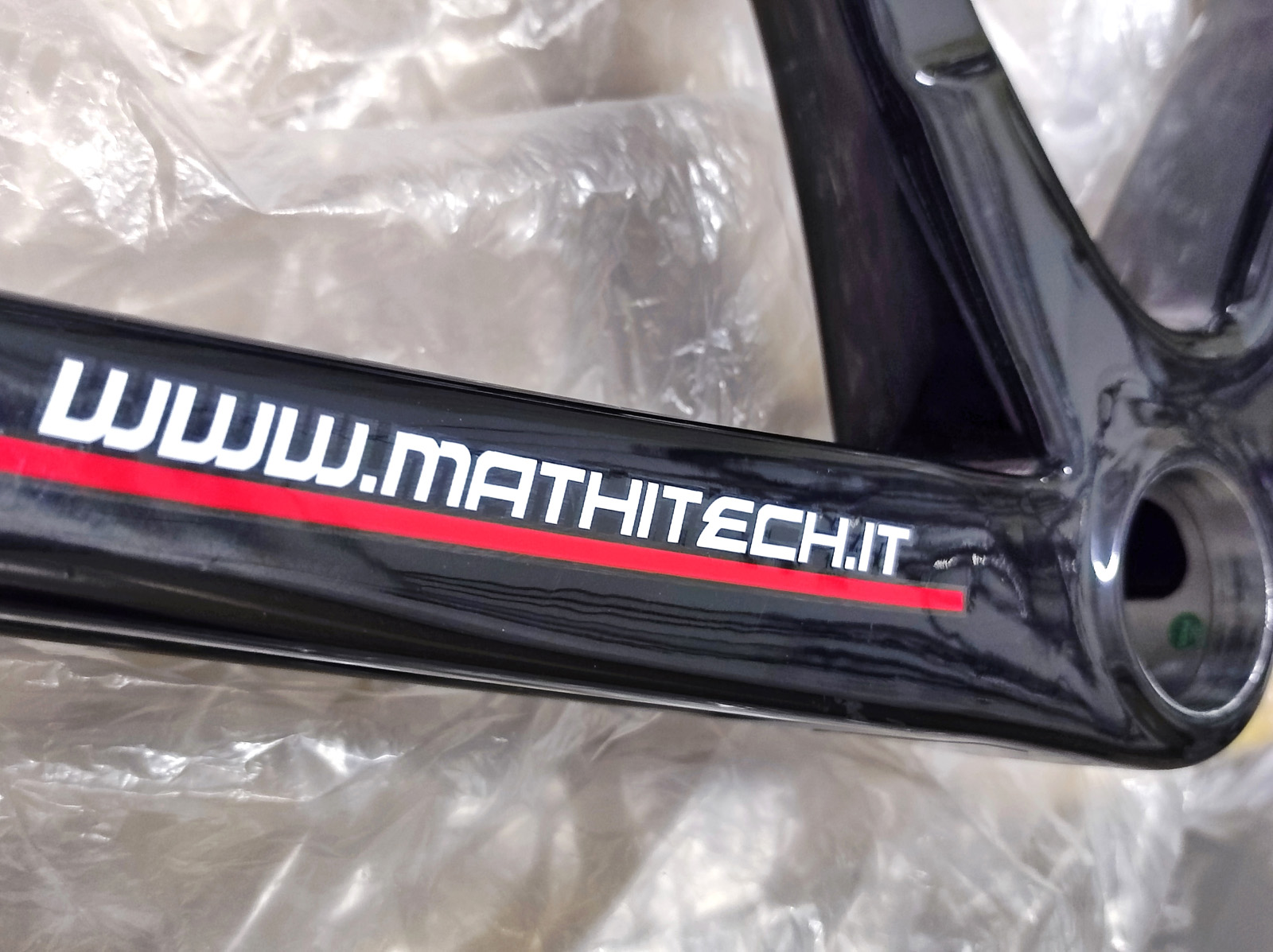 telaio marca Mathitech in fibra di carbonio alto modulo ultraleggero. Taglia 56 orizzontale x 56 tubo piantone centro movimento fine tubo (corrisponde a una XL, per altezze circa da 177 a 187)